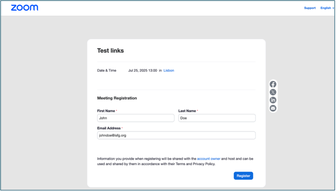 2. After clicking on "Join online event", a new browser window opens directly to a registration page in ZOOM, similar to the one below: