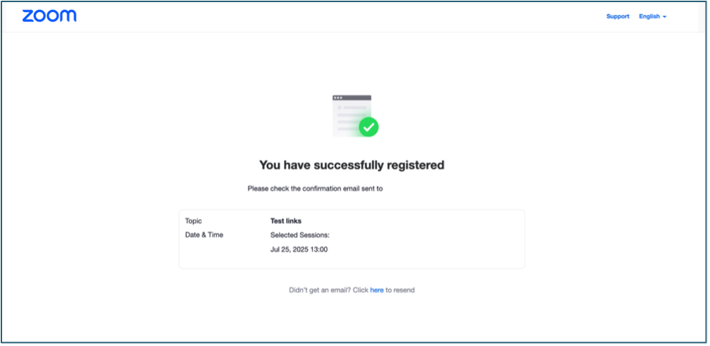 3.2 If the ZOOM session hasn’t started yet, you will receive the message below confirming that your registration has been successful, and an email is also sent to you.