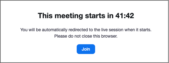OR you may be directed to a waiting page as below, in the case that it is nearly time for the session to start.