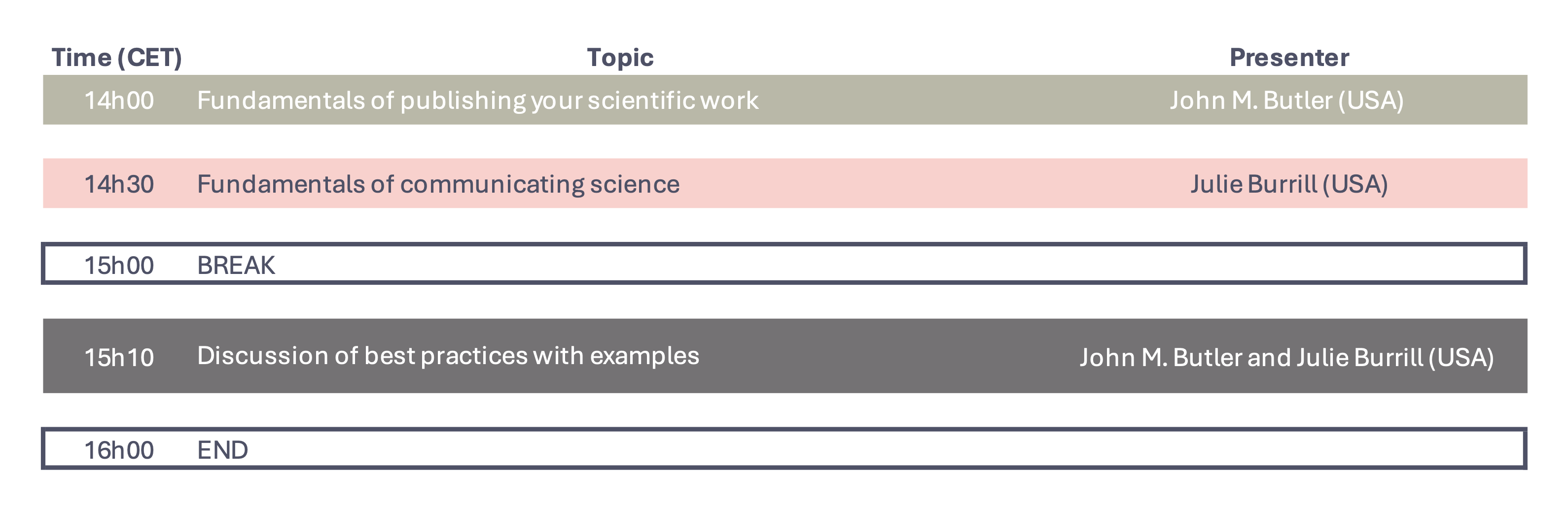 The first half of this webinar will cover principles and theory behind effective communication. The second half will involve examples from the presenters’ experiences shared in an interview style back-and-forth format. Topics to be covered will include skills for writing an abstract, ideas for poster layouts to share your data and tell your story, and what to consider if you use artificial intelligence (AI) tools in your writing.